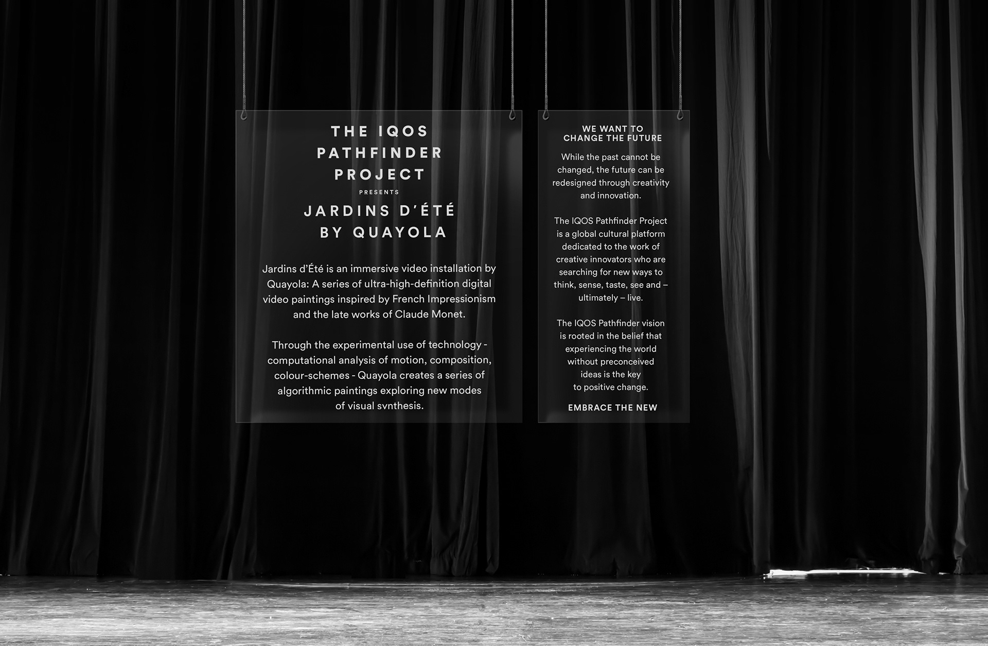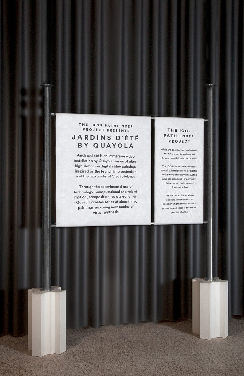 Quayola is an Italian visual artist known for blending traditional art with computational techniques. His work reimagines classical forms through generative art and immersive installations, exploring historical value and intellectual property. This project was a part of The IQOS Pathfinder Project, which consisted of a documentary of Quayola’s creation of digital paintings and then culminated in an exhibition at Milan Design Week, which I designed all elements for. The collateral consisted of everything from posters, banners, catalogues, flyers and exhibition signage.