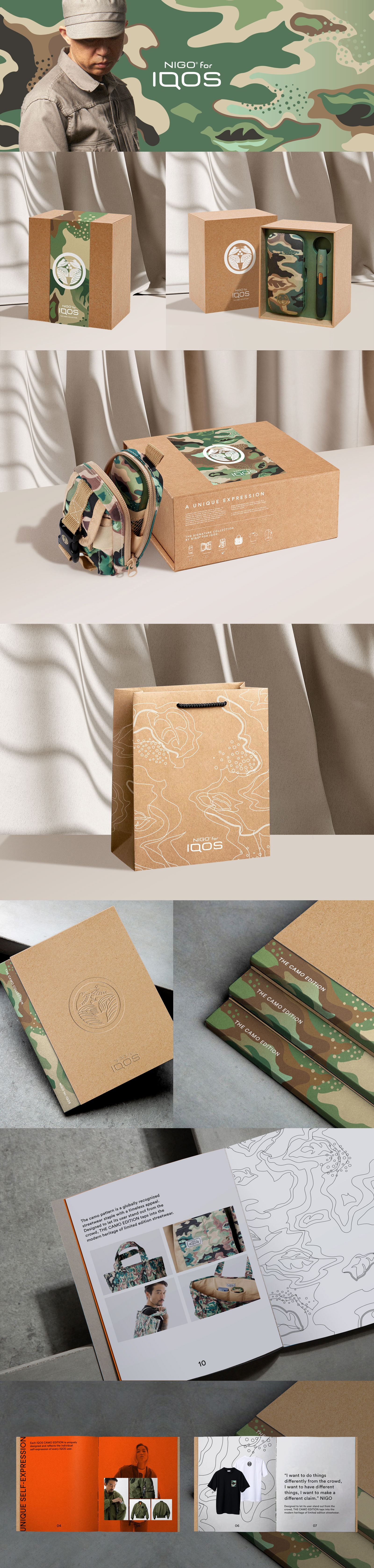 NIGO is an iconic, Japanese streetwear designer with a dedicated, international following. My task was designing all collateral for the launch of NIGO’s Camo Edition for IQOS. The collab consisted of a range of camouflage apparel and a special edition Iqos device. I helped create the packaging and the catalogue as well as instore assets.